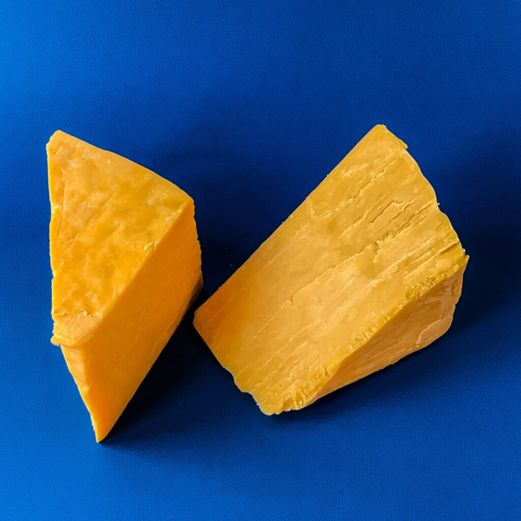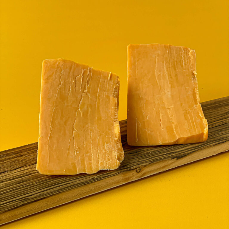 Ser cheddar to ser o głębokim, bogatym profilu smakowym, w którym kremowa maślaność łączy się z wyraźną nutą orzechów i subtelną pikantnością. Jego intensywny, bursztynowo-czerwony kolor uzyskany dzięki naturalnemu barwnikowi annato sprawia, że jest nie tylko wyrazisty w smaku, ale też atrakcyjny wizualnie. Smak tego sera jest pełny i zaokrąglony – początkowo łagodny i lekko słodkawy, z czasem przechodzący w bardziej zdecydowany, lekko ostry akcent charakterystyczny dla dobrze dojrzewającego cheddara. Ser cheddar gładką, zwartą strukturę, która przy krojeniu zachowuje kształt, ale w ustach przyjemnie się rozpływa, uwalniając aromaty maślano-orzechowe z delikatnym posmakiem karmelu. To ser, który świetnie sprawdza się zarówno do jedzenia na zimno, jak i do zapiekania – podczas topnienia nabiera wyjątkowej kremowości, podkreślając smak potraw takich jak burgery, zapiekanki czy sosy serowe.