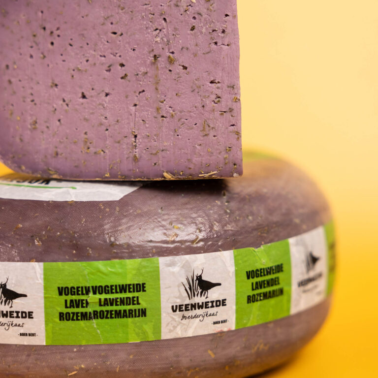 Holenderski ser Gouda Veenweide Vogelweide Lawenda z dodatkiem rozmarynu i lawendy to prawdziwa uczta dla zmysłów. Jego intensywny aromat lawendy i rozmarynu oraz kremowa, łatwo krojąca się konsystencja sprawiają, że jest niezwykle atrakcyjny dla miłośników serów. Bogactwo smaku, zbalansowane połączenie ziół i delikatna tekstura czynią go idealnym dodatkiem do różnorodnych potraw, zachwycając zarówno wyglądem, jak i wyjątkowym doznaniem kulinarnej przyjemności.