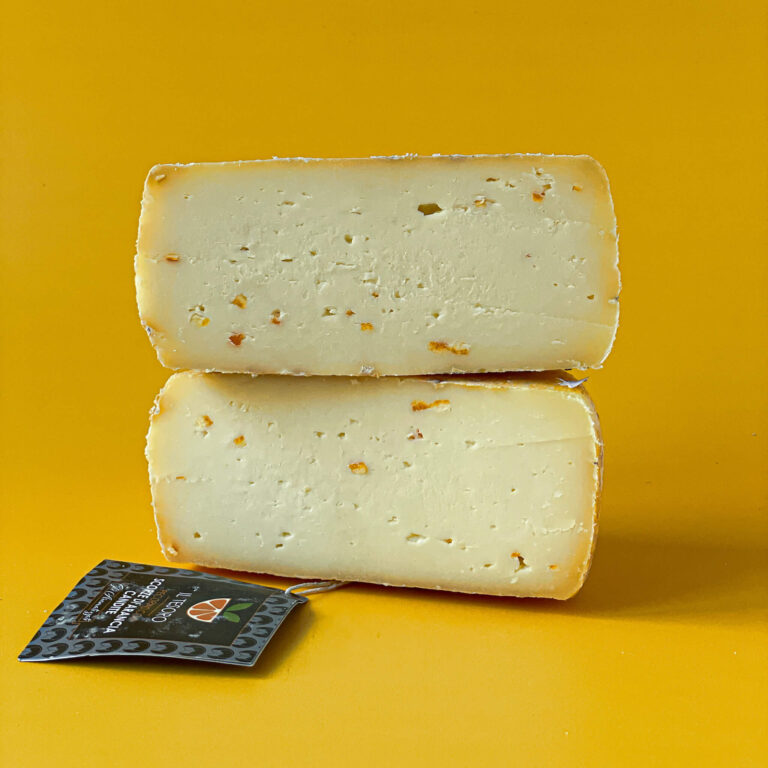 Ser Pecorino to tradycyjny włoski ser produkowany z mleka owczego. Jego historia sięga starożytności, sięgając czasów rzymskich, gdy owce były podstawowym źródłem mleka dla mieszkańców Półwyspu Apenińskiego. Nazwa „Pecorino” pochodzi od włoskiego słowa „pecora”, które oznacza „owca”, co odnosi się do użytego surowca. Pecorino Toscano con scorze di arancia candite czyli ser pecorino z dodatkiem kandyzowanej skórki z pomarańczy, to nowoczesna interpretacja tradycyjnego sera, łącząca w sobie tradycję z nowatorskim podejściem do smaków. Dodatek pomarańczy wprowadza do tego serowego klasyka świeżość i delikatną słodycz, tworząc wyjątkowy smakowy kontrast.