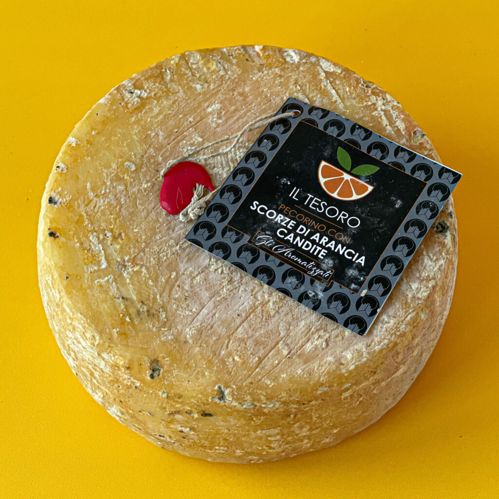 Pecorino con scorze di arancia candite to wyjątkowy ser, który powstaje z najwyższej jakości mleka owczego z Sycylii. Jego charakterystyka obejmuje intensywny, głęboki smak, typowy dla dojrzałego pecorino, oraz subtelne nuty słodyczy i delikatności pomarańczy. Dzięki naturalnemu procesowi dojrzewania, ser nabiera wyrazistego aromatu i bogactwa smaku, jednocześnie zachowując swoją charakterystyczną konsystencję. Świeże mleko dostarcza się do mleczarni, jest pasteryzowane i zaszczepiane podpuszczką i fermentami mlekowymi. Następnie po uzyskaniu skrzepu jest on rozdrabniany i formowany w odpowiedni kształt. Dlatego podczas przetwarzania do pecorino dodaje się kandyzowaną skórkę z pomarańczy, wzmacniając jego aromat. Starzenie odbywa się w komorach o kontrolowanej temperaturze i wilgotności. W odróżnieniu od pecorino romano, pecorino toscano dojrzewa krócej, przez co jego konsystencja jest bardziej miękka a smak mniej słony.